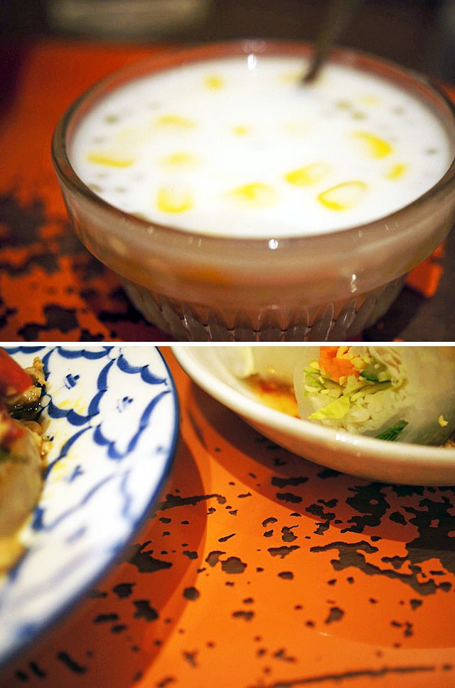 ところどころがペンキが剥げたトタンのようにみえるんだけど、透明のプラスティックにペンキで模様をかいている…、でもこうやって写真を撮るとなんだか本当の屋台で食べているような、そんな気持ちになってくるのがオモシロイ。
