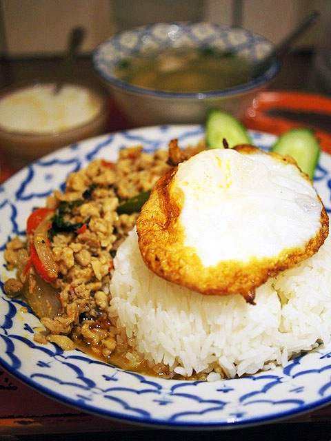 タイのレストランでは「チキンバジルライス」って言う名前。