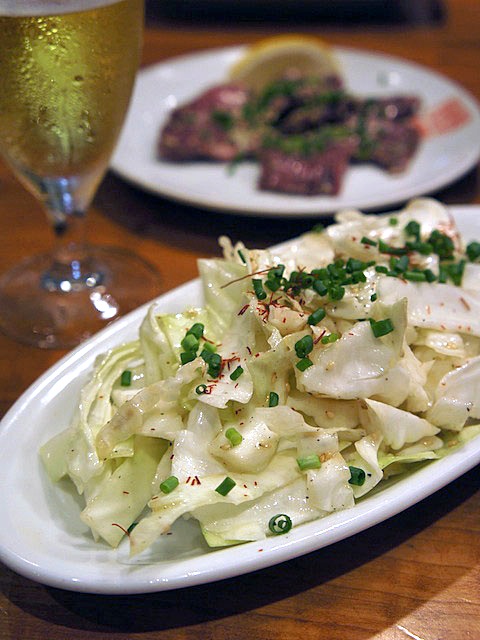 ざく切りキャベツを肴にまずはビールで乾杯をする。
