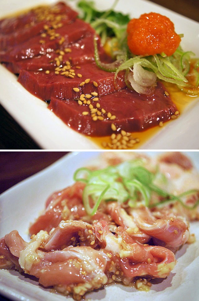 レバーに比べて、カッチリとした歯ごたえで、サクッと歯切れてネットリ舌に絡みつく。