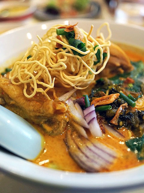 カレースープの中に沈めた麺の上にパリパリに揚げた中華麺。
