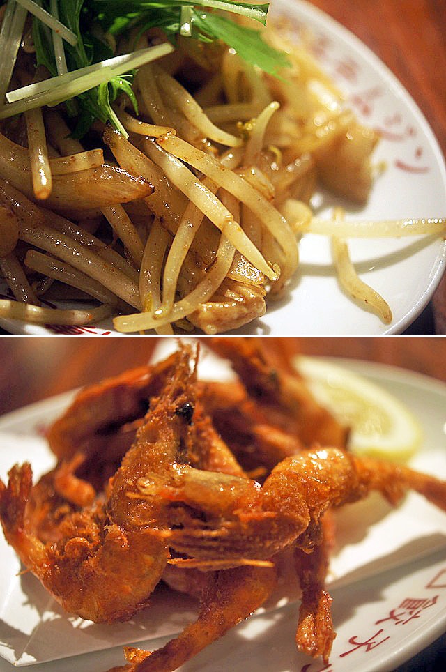 つまみをいくつか…、すぐに出来るのが甘エビの唐揚げだっていうのでそれをたのんでサクサク、パリポリ食べる。