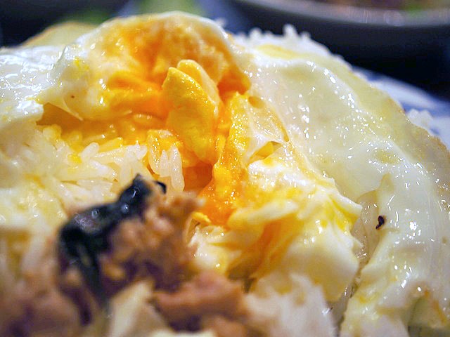 上に目玉焼きをのっけて食べるのが伝統で、それで注文するとき「黄身まで良く焼きでお願いします」って一言添えた。