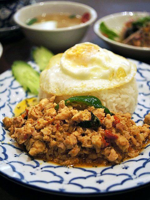 インドネシアには鶏挽肉と野菜とご飯と炒めたモノと、いろんなバリエーションがある中で、ボクはタイのコレが好き。