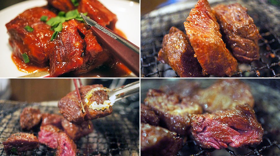 肉の表面がこんがり、徐々に焦げてきて、真っ赤だったタレにまみれた色が徐々に落ち着いていく。