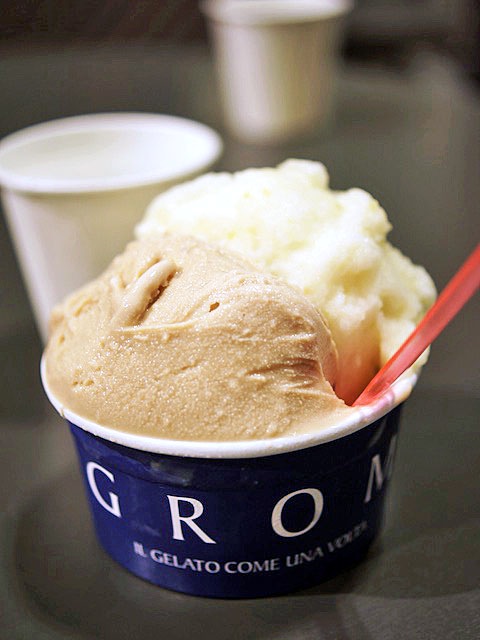 夏は行列ができていた人気のジェラート屋さんもさすがに静かで、すんなり椅子に座れてニッコリ。