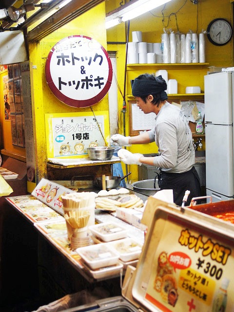 ホットク食べよう…、って。