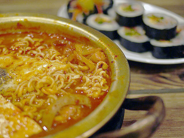 アルマイト製の小さな鍋が、焦げてよじれてゆがんでいくほど強く煮込んで、なおも固さを失わぬ韓国乾めんの力強さがいとおしい。