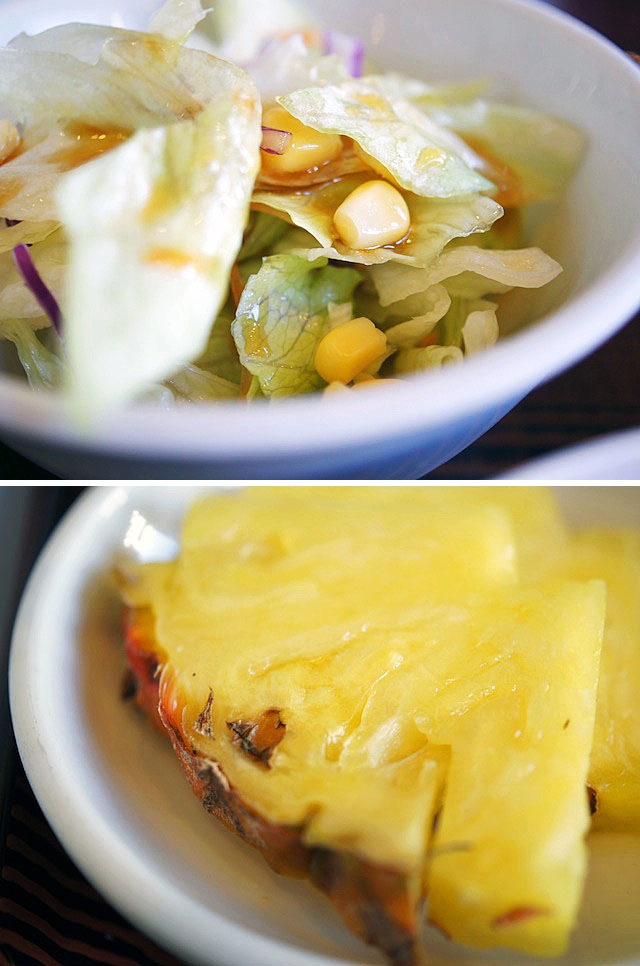 ご飯に酢豚、塩味スープにパイナップルがついてやっぱり800円。