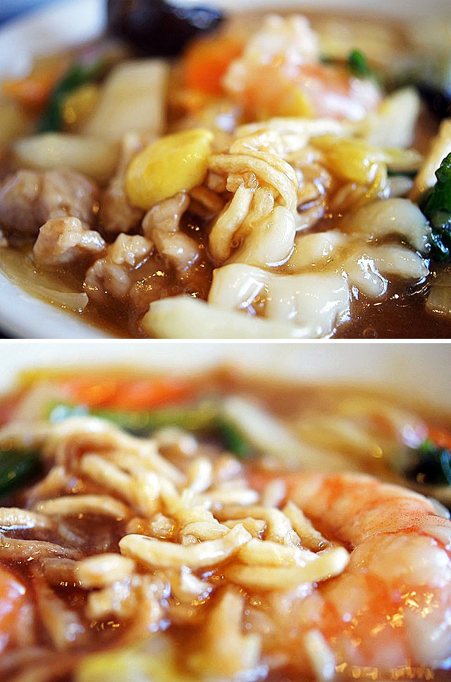 サクッと揚げた麺の渇いた状態にとろみがからんだ食感もよく、それをしばらくほうっておくと麺がとろみを吸い込んで、麺そのものがトロンととろみを帯びていくのもまたゴチソウ。