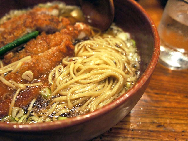 日本蕎麦と中華麺の中間みたいなストレート麺。