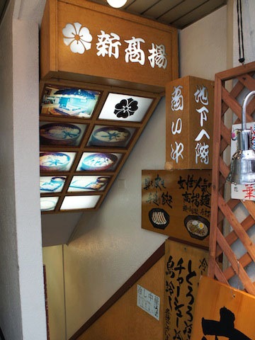 小さなビルの地下に向かって急な階段が口を開いたところに看板。