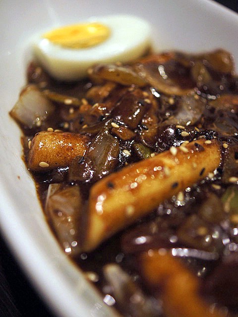 コッテリとして油の風味がドッシリで、ムチムチした韓国餅の食感たのしく引き立てる。