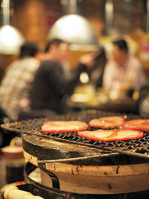 最近、増えたおしゃれ系の焼肉店に行くと、肉を焼いてるんだかどうなんだかわかるところがあったりするけど、焼肉店はやっぱりこうしてガンガン焼いて、煙にまみれて腹一杯になっていくのが本流でしょう。