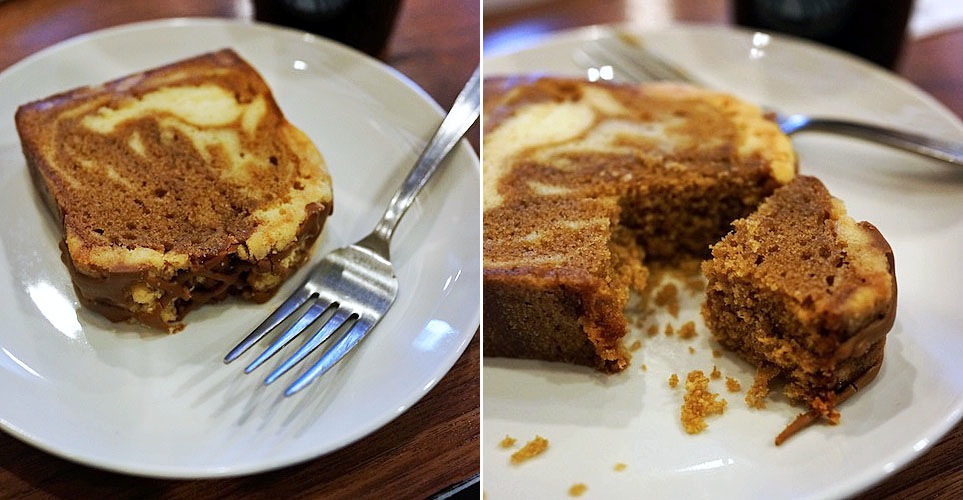 コーヒー&エスプレッソケーキっていうシリーズで、ラテやモカとスタバの飲み物をテーマに作られたパウンドケーキ的なケーキで、コーヒー・ドリンクとのペアリングを考えて作られているっていうのでワクワク。