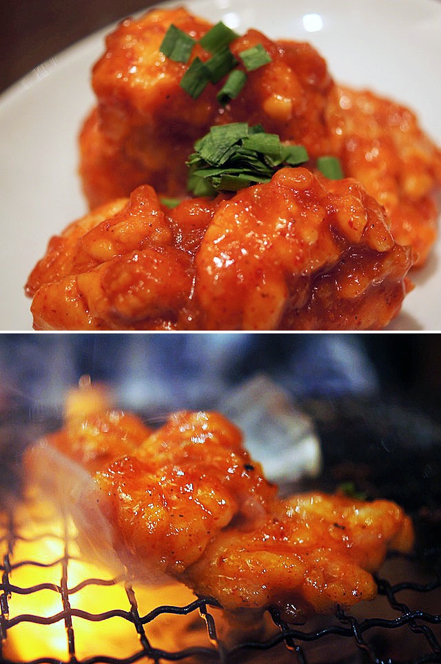 塩ダレをただまぶしただけじゃなく、粗くおろしたニンニクと塩と胡椒をグイグイ揉み込み、肉の仲間で味をほどこす…、それをこんがり表面焦げるまで焼き上げて、カプッと食べると口いっぱいにほとばしり出る、なんたるおいしさ。