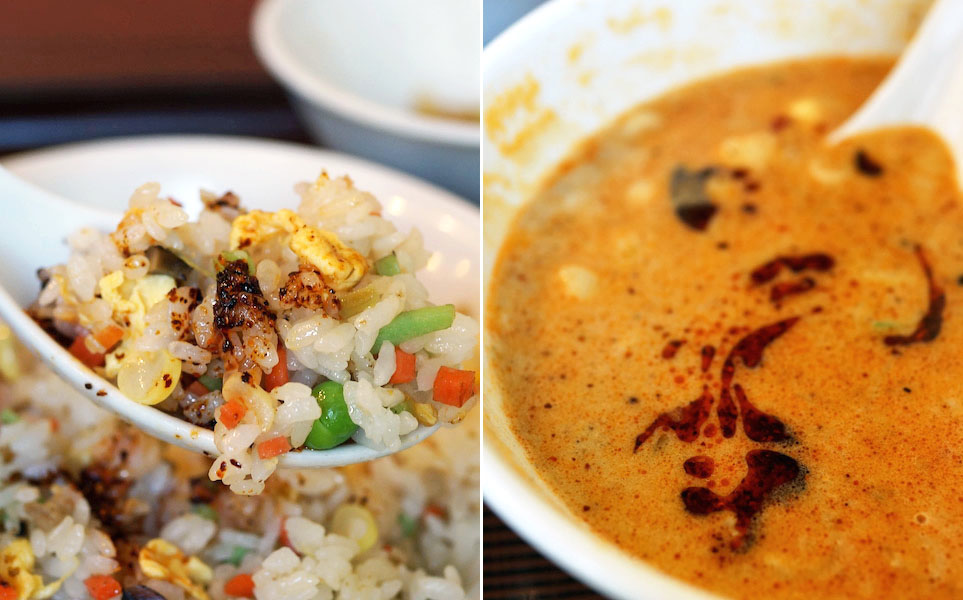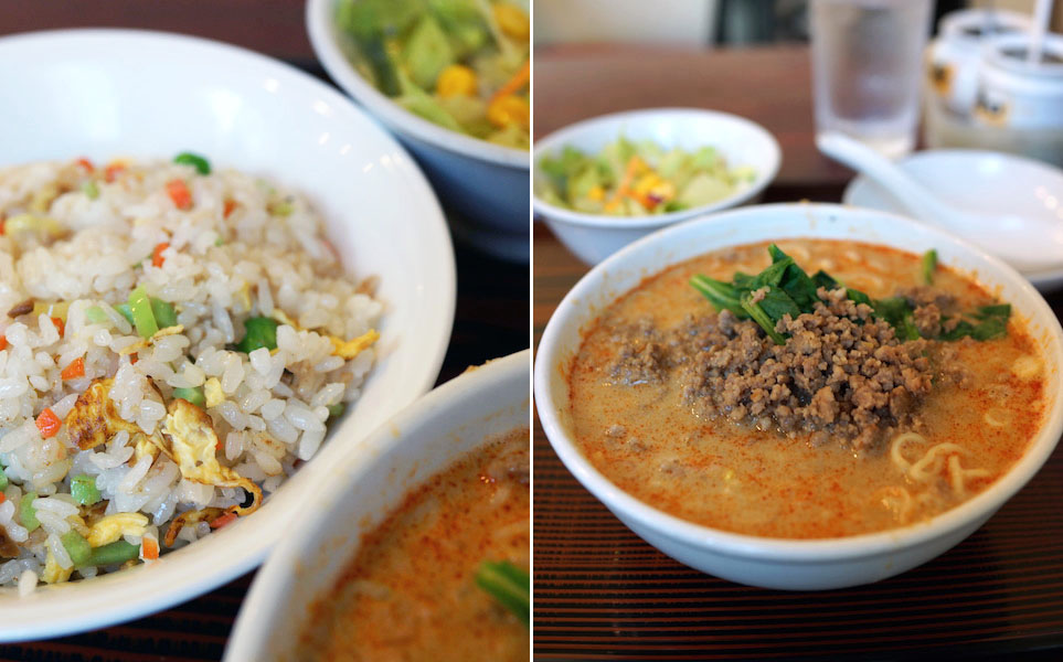 まずは担々麺がやってきて、しばらく経って、できたてチャーハンが追いかけてくる。待つのもたのしい、オゴチソウ。