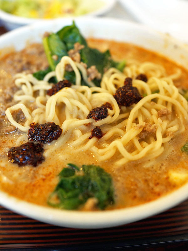 スッキリとした辛い香りと痺れがキリッと味をひきしめ、細めの縮れた卵麺にからんでなんとも味わい深い。