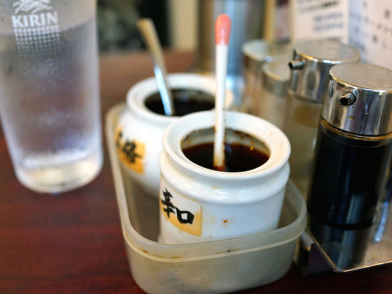 旨みと香りが際立ったオリジナルのと、辛味をドスンと効かせた辛口。2種類そろってテーブルに並んでいるのに気持ちがあがる。