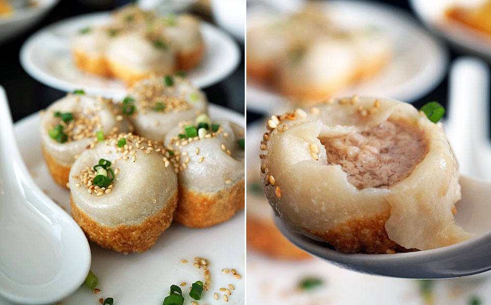 その部分はバリバリ歯ごたえたのしくて、ひき肉部分に触れた皮の内側はポッテリ粘ってムッチリ前歯にからみつくような肉感的が食感になる。