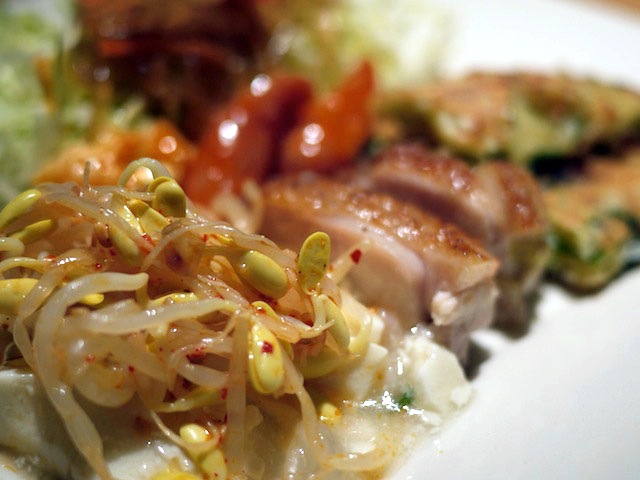 豆がコツコツ、歯ごたえたのしいもやしのナムル。