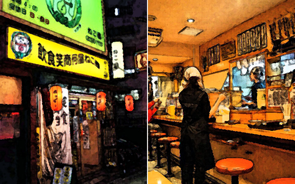 夜を新宿、花園神社のそばにある「ねこ膳」という定食屋にて。