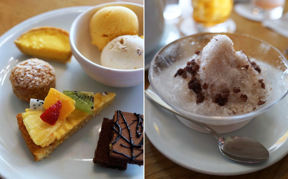 夏のデザートというコトで韓国風のパッピンス…、あずきをのせたかき氷がありそれでシャキッとお腹の中をひきしめた。