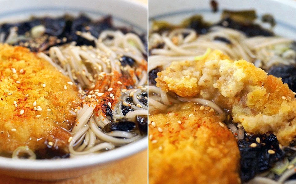 蕎麦にコロッケをトッピングという、一見お行儀悪いように見え、けれどここのこの組み合わせは最高クラス。