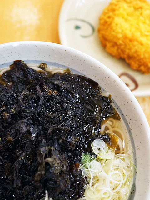 今日もそう…、乾いたアオサがドッサリのっかり、それが徐々に出汁を吸い、出汁をおいしくしてくれる上、蕎麦にトロンとからんで喉越し肉感的にしてくれる。