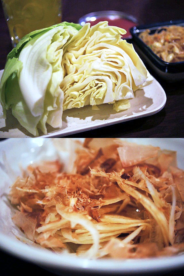 ほとんどのテーブルにもれなく一個、のっかてるのがキャベツでそれをたのんで食べる。