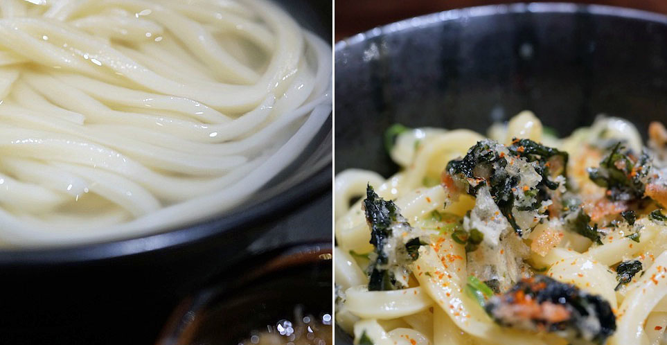 茹でたうどんを一旦冷たい水で〆、それを再び温める。