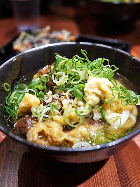 牛バラ肉を甘辛味にジックリ煮込んで、ほろほろ繊維が崩れる程になったのを、タップリのっけた熱々うどん。