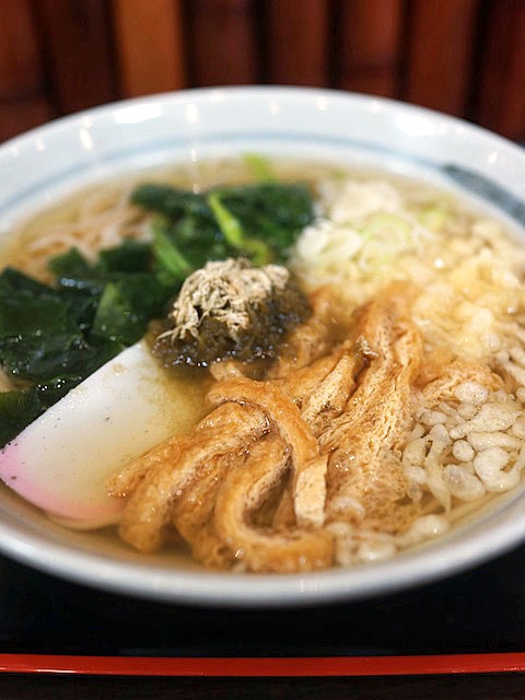 高級って言ってもこれで500円という値段なんだけれど、ほうれん草に刻んだネギ、ワカメにかまぼこ、甘辛煮込みの油揚げ。