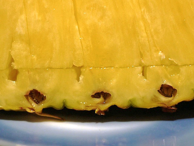 皮付きの大きなパイナップルを12等分ほどに月切り。