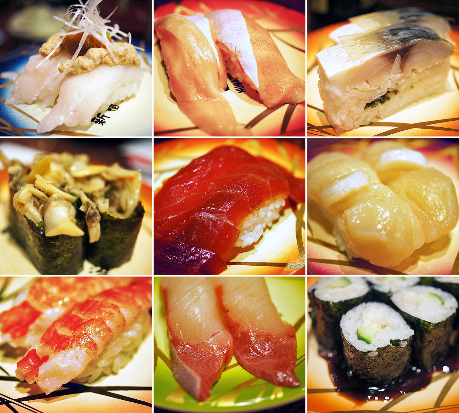サーモン、分厚いサバの押し寿司、煮たアサリとか漬けマグロ。