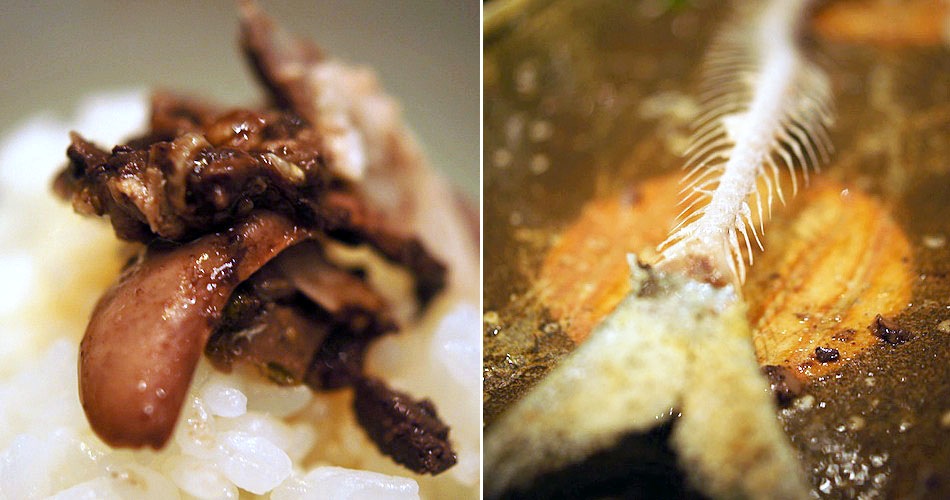 イワシのワタをご飯にのっけて、そこにイワシの煮た汁を、タップリかけてザブっと食べる…、苦味と甘味が一緒に口にやってきて、なんともおいしい。