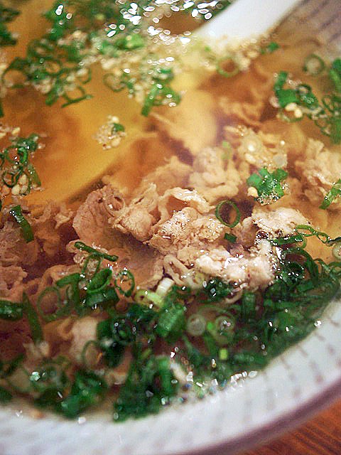 肉すいをもらってハフっと汁を飲みつつ、煮込んだ牛肉つまみに食べる。