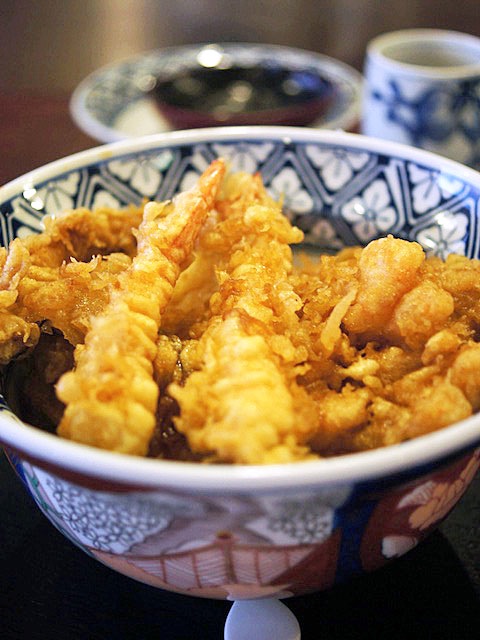 天ぷら屋さんの天丼は、どこでもどっしりした器。