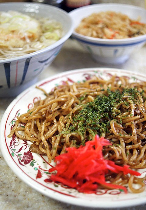 鉄板で焼いた焼きそばにはタップリ胡椒。