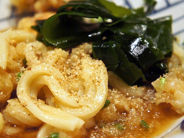 うどんにのせてタレを付けると、磯の風味をしたたか吐き出す。