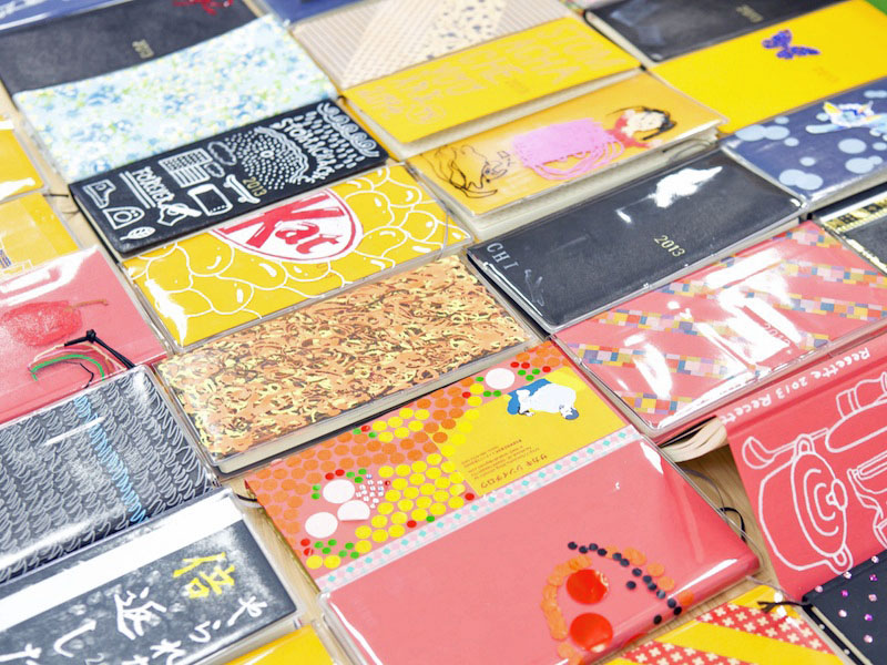 みんなで作った手帳をズラッと並べると、これがもともと同じ手帳だったことが不思議に思えるほどに多彩…、人の個性の多様で多彩なコトと同じにこれまた感心。
