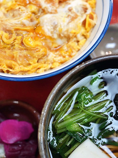 小エビ天ぷらを玉子でとじた丼と、熱々の蕎麦でひと揃えというお得な定食。