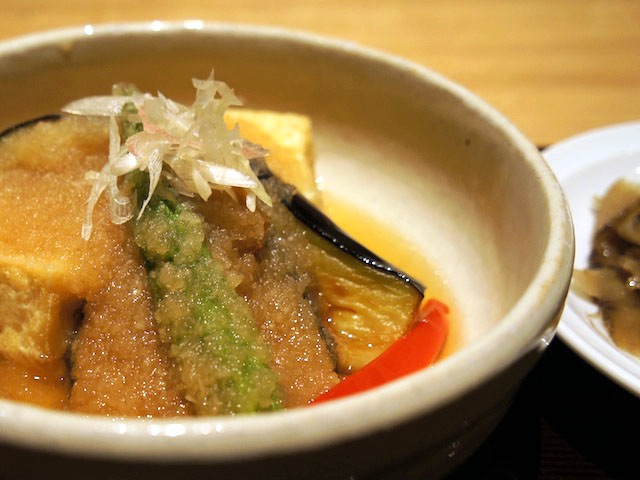 カボチャに茄子、オクラにゴボウと揚げた野菜の甘味も見事。
