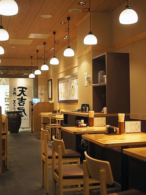 同じ白木のテーブルと実用的な椅子が並んだ神保町の伝説的なる天丼の店「いもや」の店のような造り。