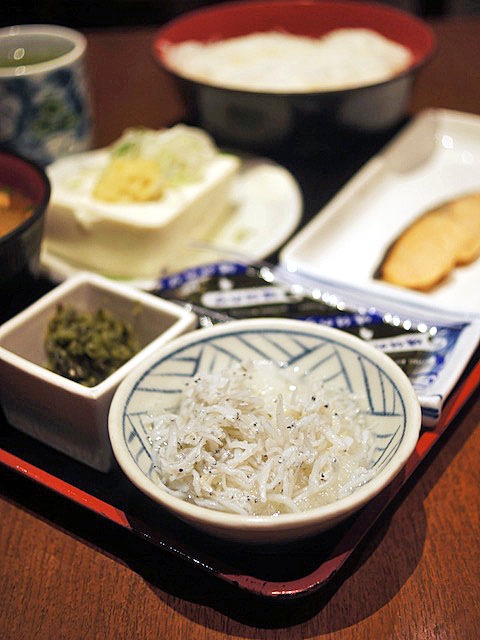 メインを選んでそこにしらすおろしと漬物、味付け海苔。