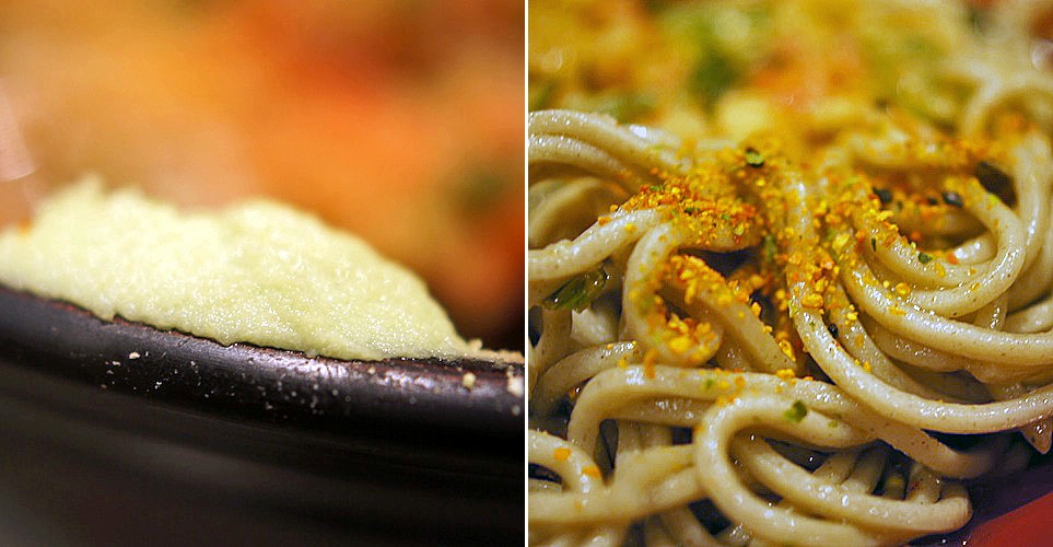 もともとうどんで育ったボクは、「麺=ツルツル」と思い込んでいたのにここで、唇の間をすべりこんで来ないモソモソした麺をはじめて食べた。