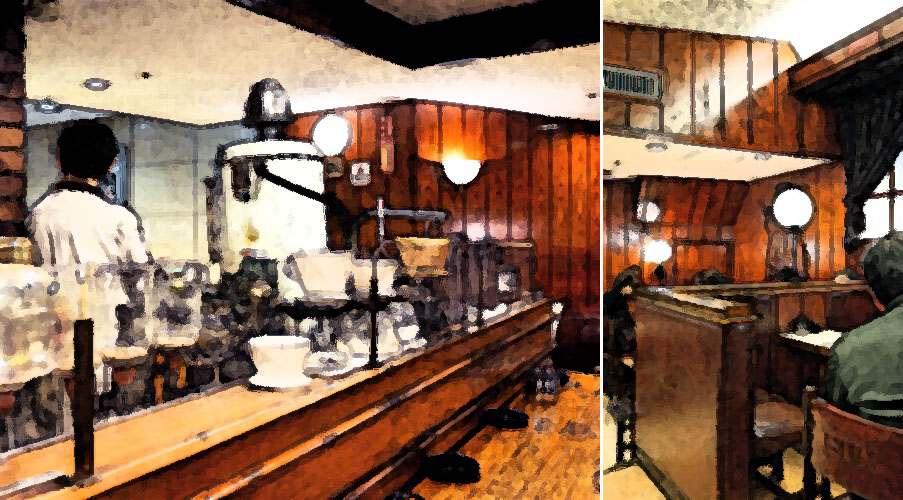 寿司をつまんだ店とおんなじビルの中。昭和な風情の喫茶店。