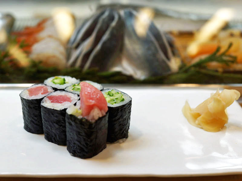 中トロを芯にしてもらった鉄火と、胡麻と大葉をあわせたかっぱ。冷っとマグロの脂が口に広がって、それをシャリの酸味が吸い取り拭う。パリッと海苔の歯ざわりもよく、かっぱのキュウリがカリカリ、口をみずみずしくする。