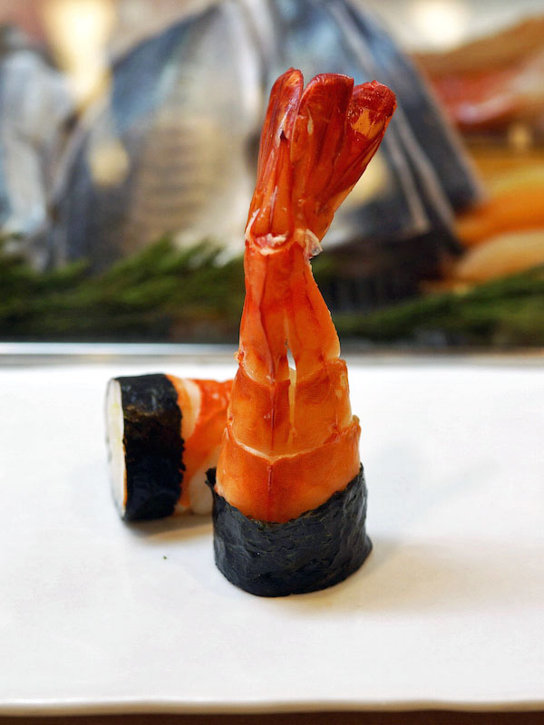 白魚の軍艦で軽い渋みを味わって、茹でた大正エビをメインディッシュのように味わう。