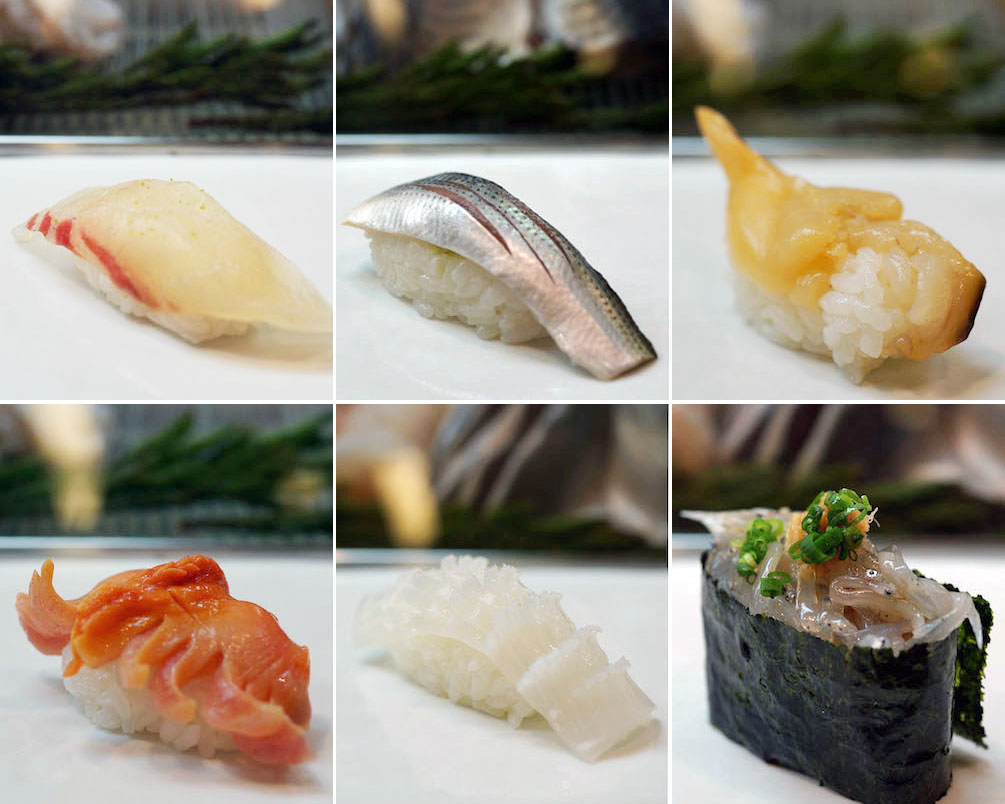 コハダにあおやぎ。赤貝と、どれも香りが独特で、松かさ状に包丁を入れ仕上げた白イカ。繊維を断って、口の中でトロリととろける食感にする。